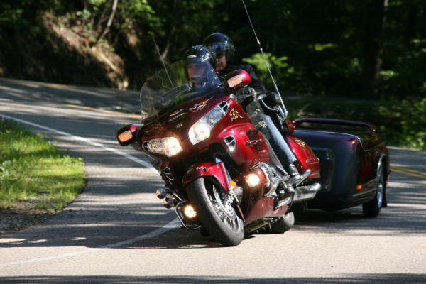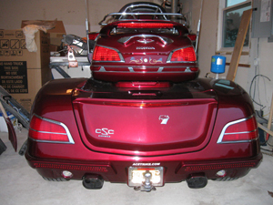 2005 Goldwing (Bloodstone) with CSC Viper trike kit and CSC Escapade Elite Trailer