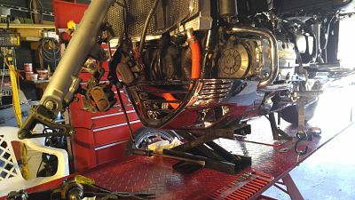 As with the new style engine guards it took a brain to install. It is made exactly the same as the factory one which is also tricky yo install it really helps to remove front wheel and fender and do the center first re-drilling don`t work because then the other parts won`t lock in correctly above it I tried that. After the center is in about halfway make sure the hoses are not binding then do the right loosely then left then tighten center again check hoses you might have to push around a little then the other screws an it will be correct again I measured an old one and the new one they are the same. |