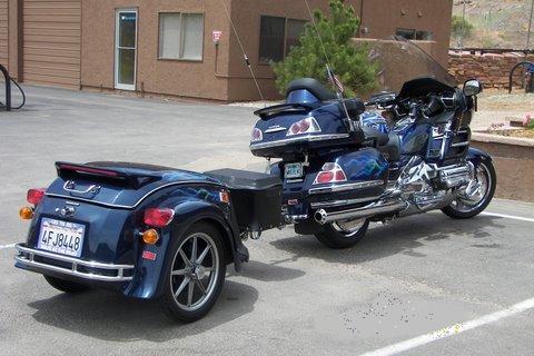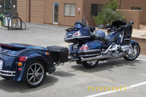 My bike is a 2007 dark blue. The trailer is a 2005 Bushtec Roadstar. Both have lightning bolts airbrushed, and clear coated.