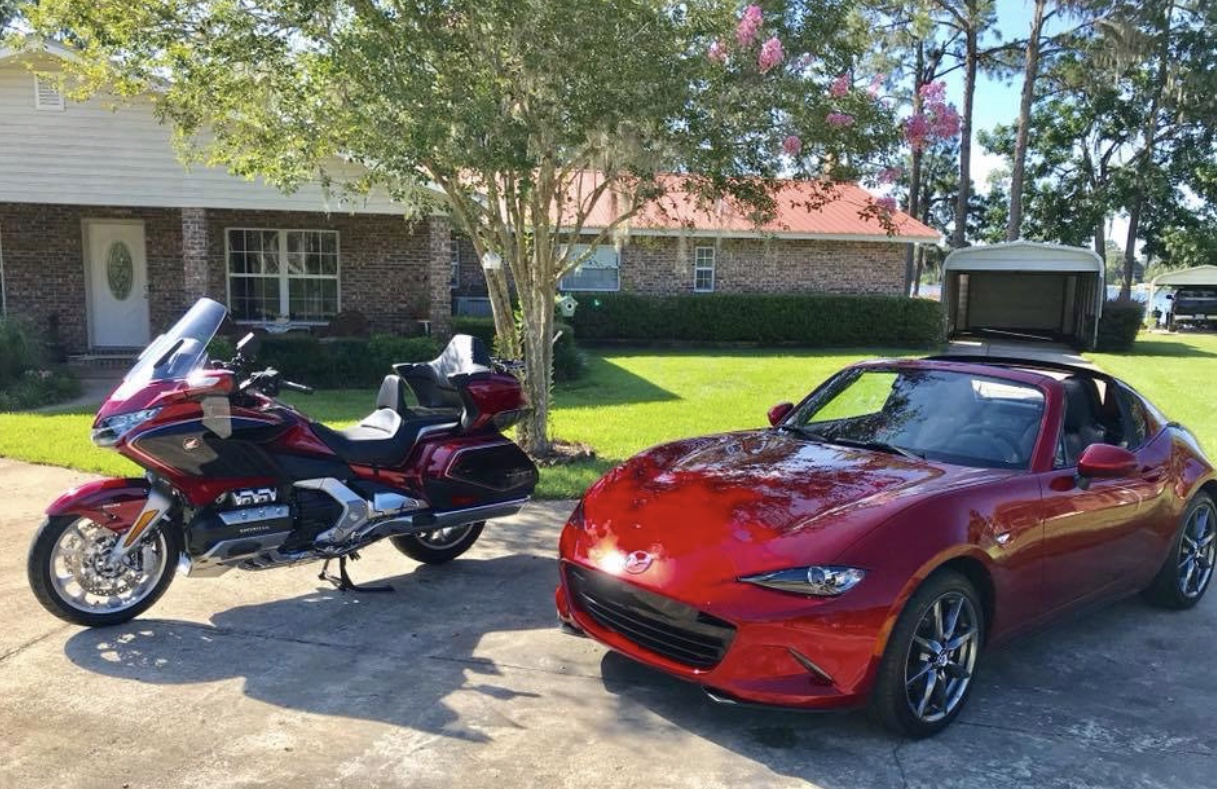 | Installed homelink on my 2018 Goldwing. This is a marathon installation project of 5 hours but the results are fantastic. I don’t have to mess with remotes and the system has two channel’s (switches) I can open the gate to the property and the garage door on the move and just drive into the garage——-all done from on the bike. Don’t have the stress of remembering or finding two remotes or the chance of loosing them. |