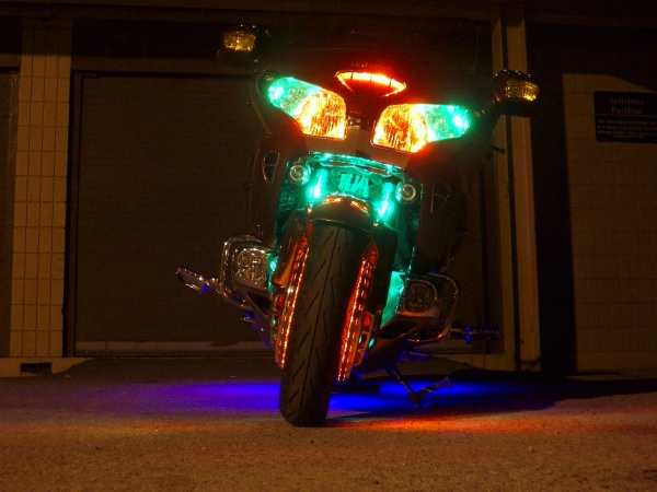 | These scuff covers really add a ton of bling to an other wise dull looking area because of the ugly grey stock covers. Installing Boogey Lights or some other type of LED's in this area will really make your bike stand out! The louvers give you more surface area to reflect the lights, which is better than getting the chromed version of the stock covers. |
