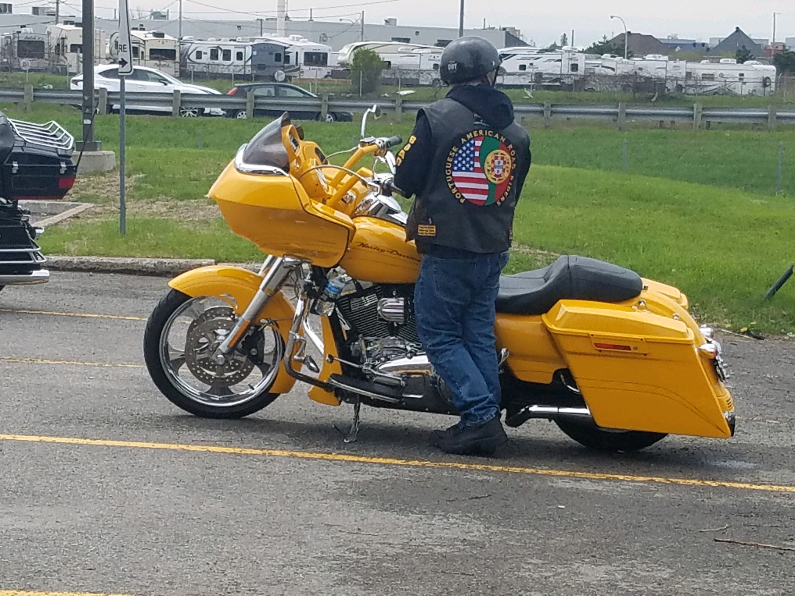 Yellow 2012 Harley Davison Road glide