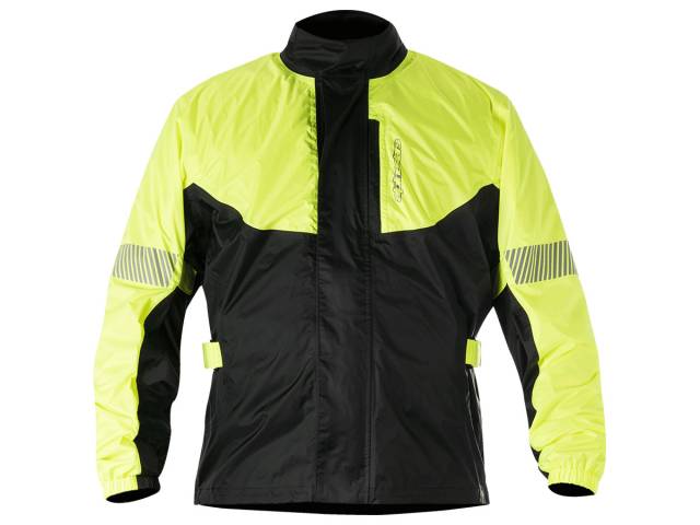 Available while supplies last.Highly versatile and extremely lightweight, the Hurricane Rain Jacket offer 100% waterproofing for when the bad weather closes in. Comes with its own transport/storage bag, making it an indispensable part of your motorcycle kit bag.FeaturesConstructed from ultra-lightweight Polyurethane (PU) coated 100% waterproof poly-nylon fabric that has been specially treated to avoid sticking when worn over textile or leather garments.All seams are tape-sealed for guaranteed waterproofing performance.Light poly-mesh lining improved internal air circulation and comfort.Reflective detailing improves visibility of rider in poor weather conditions.Comes with convenient storage/transport bag to easily fit inside luggageVelcro adjustments on the arms and waist and shock chord adjuster ensure close fit over outer garmentElasticated collar and cuff help form hermetic seal to avoid wind and water penetrationWaterproof compartment on inside chest for easy access and peace-of-mind storag WARNING: Cancer and Reproductive Harm - www.p65warnings.ca.gov This warning is being provided to comply with the State of California's Proposition 65.