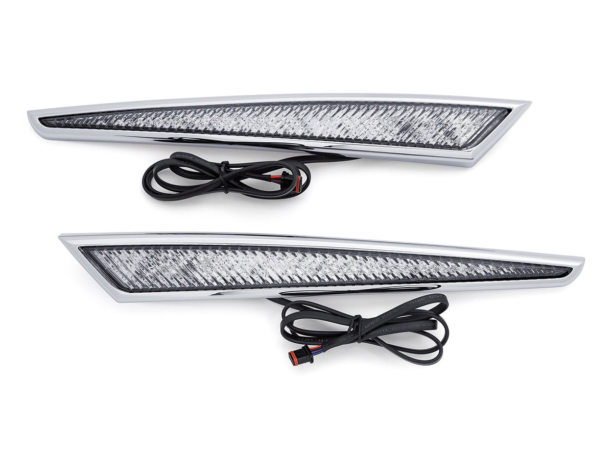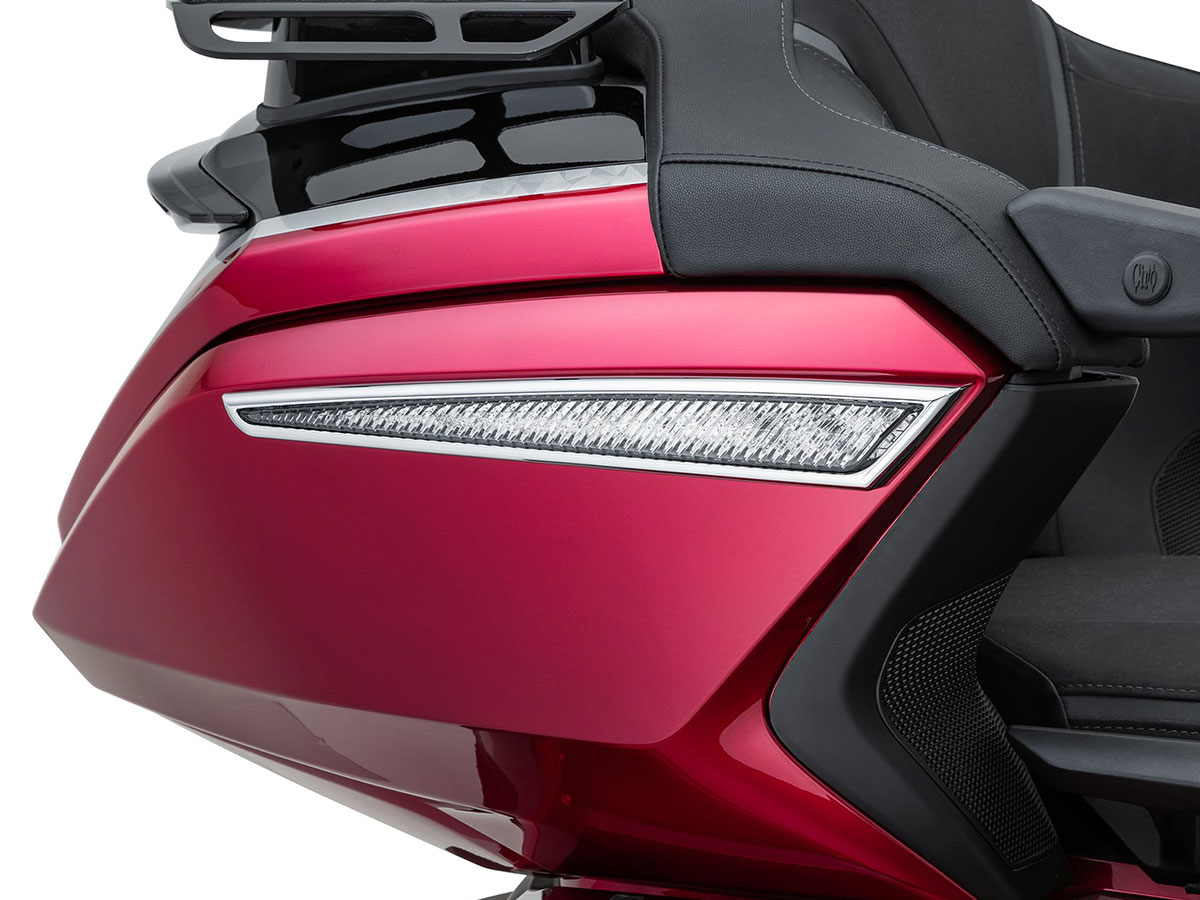 | Another great GoldStrike product. Very well packaged, great product quality and finish, good clear instructions. Highly suggest for added side visibility both day and especially night riding. The Red led run light are very noticable, even brighter for the turn signal and brake. Suggest watch a few of the available install videos for helpful hints. Suggest doing this product install at the same time as other possible trunk mount installations such and trunk rack, rear lights, interior trunk light, etc while trunk assembly is apart. I ran wiring to the lighting distribution block which I highly suggest if you had a few LED accessories.Pattern and instructions provided for hole drilling. Really an increase in side visibility for greater safety. Highly suggest not only for safety but add a great WOW factor to the bike or trike. |