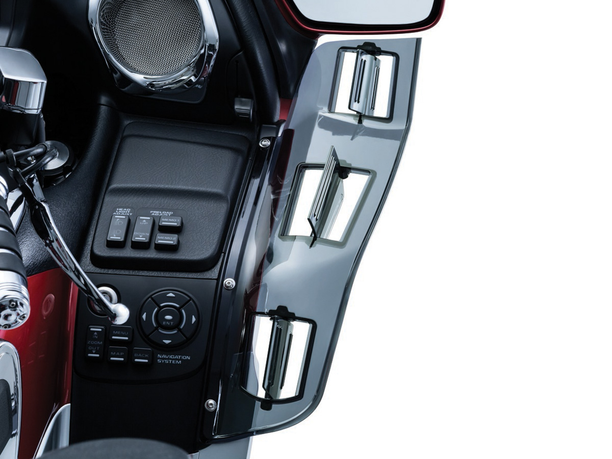 | Don't take as long as I did to order these dragon wings. They work great!! They are also adjustable, so you can get the amount of wind you desire. Plus, they look really good on the goldwing; feel as though I'm sitting in the cockpit!! |