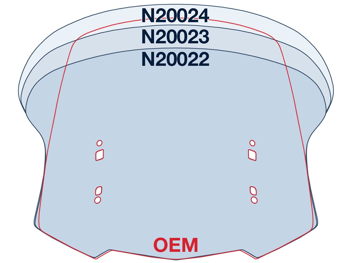 | I'm short (5' 7") so went with the 16" version as I find the original screen a little tall. The screen is very well made. However the diagram provided to show the screen shape relative to the original is a bit misleading. The screen I received is quite a bit narrower at the bottom than the original, not the same width as the diagram shows, but the width is as shown at the top. In it's lowest position there is some wind noise around my helmet but no significant buffeting. By raising it slightly but still below standard height, that noise is eliminated. It allows a bit more wind on the arms than the standard screen but I like that in the warmer summer months. Overall I like it but also have a wider F4 Customs shield as well for a bit of extra width at the base when I want it. |